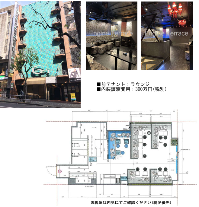 ・ラウンジ、バー、ホストクラブその他飲食店ご相談可能 ・内装譲渡費用:300万円(税別) |