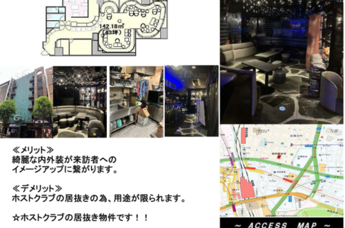 歌舞伎町特集 新宿駅,43坪,1階 2025年10月23日 / 物件番号 #07281 所在地 東京都新宿区歌舞伎町2丁目10-5 最寄り駅 JR山手線「新宿」駅徒歩7分 現況 ホストクラブ(居抜) 面積/階数 142.18㎡/1階 家賃 210.4万円 共益費・管理費 402,050円 保証金(償却) 5ヶ月 契約形態 定期借家4年 契約年数 4年 再契約 応相談 礼金 2ヶ月 造作譲渡費用 5,500,000円 税込 現況 空 備考 ・ゴミ処理代月額:87,978円 ・害虫駆除月額:20,202円 ・看板設置代月額:11,000円